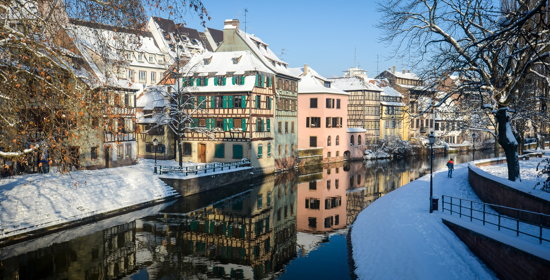 Ci-dessous: Je suis de passage à Strasbourg à l'hiver de 2010. Il vient de neiger une bonne dizaine de centimètres sur la ville, l'occasion est trop belle pour ne pas déambuler dans les rues de la Petite France afin d'immortaliser les maisons à colombages et la rivière l'Ill. Le centre-ville a été ajouté sur la liste du patrimoine mondial de l'humanité par l’UNESCO.